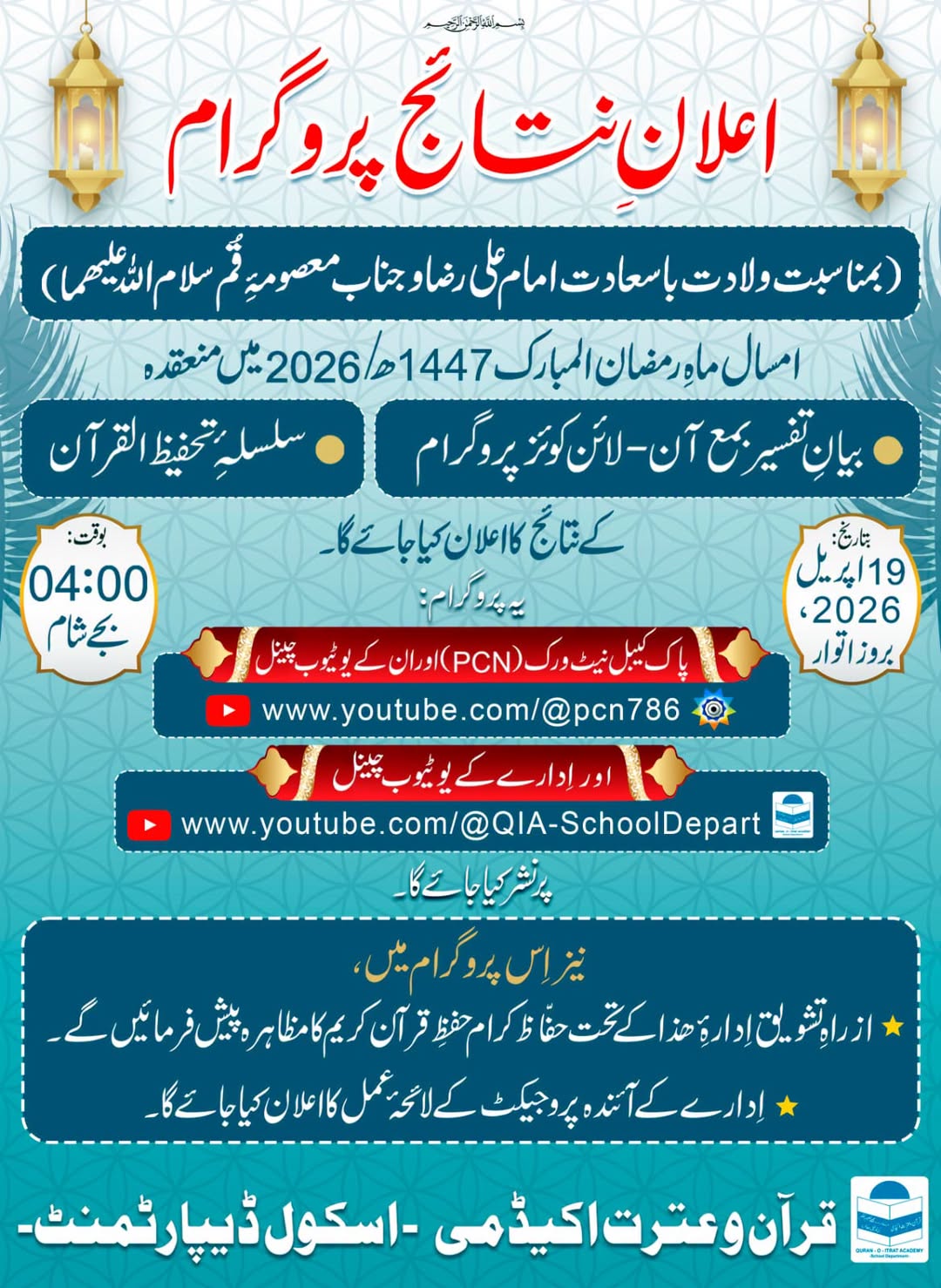 بیانِ تفسیر بمع آن-لائن کوئز اور سلسلۂِ تحفیظ القرآن 1447ھ/2026