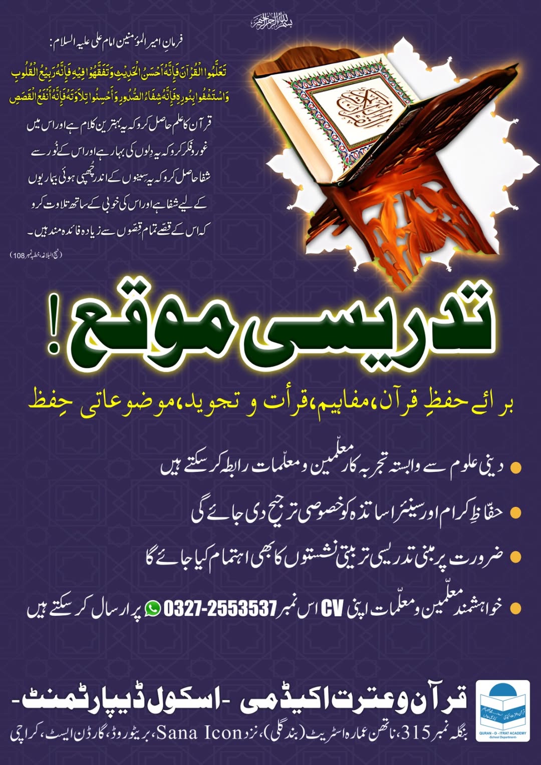 قرآن و عترت اکیڈمی -اسکول ڈیپارٹمنٹ