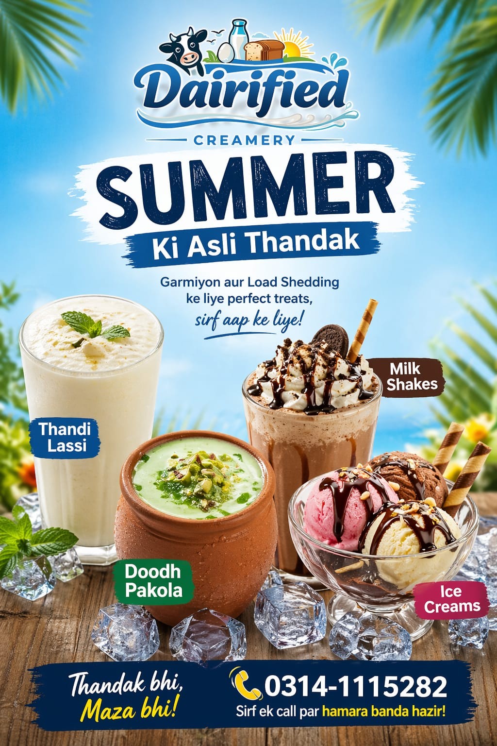 مزے لیں ٹھنڈی لسی، دودھ پاکولا، ملک شیکس اور آئس کریمز کے — تازہ اور ٹھنڈے ذائقے کے ساتھ 😋