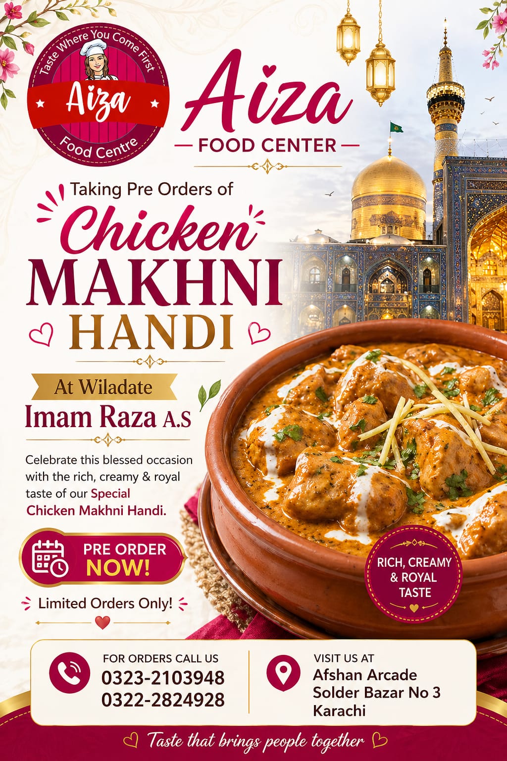 🎉 Serving on: 11th Zilqad after 12 pm, Wednesday – Wiladat Day