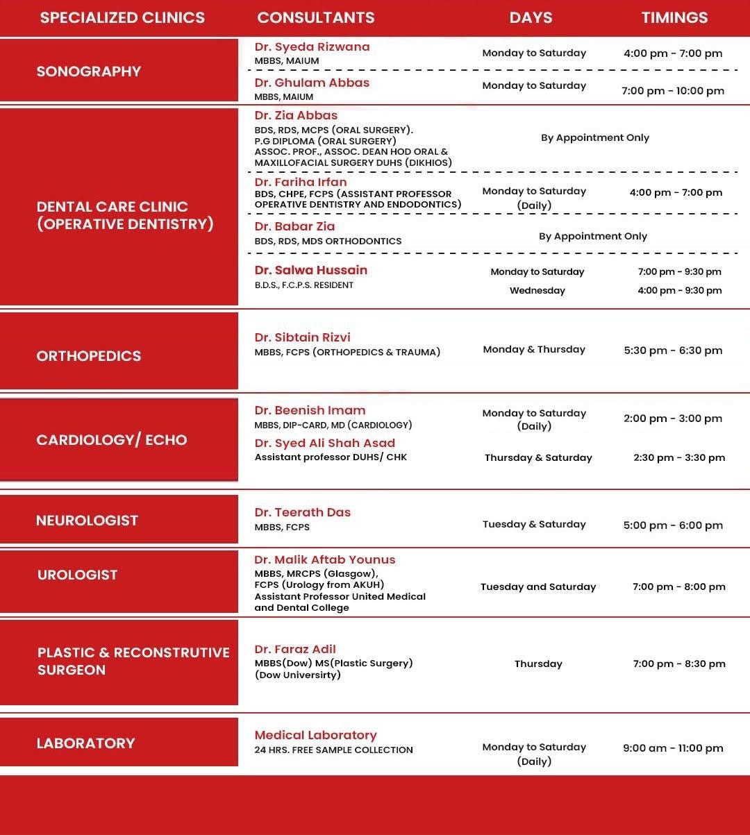 Al-Hujjat Medical & Diagnostics OPD Schedule for the Month of November