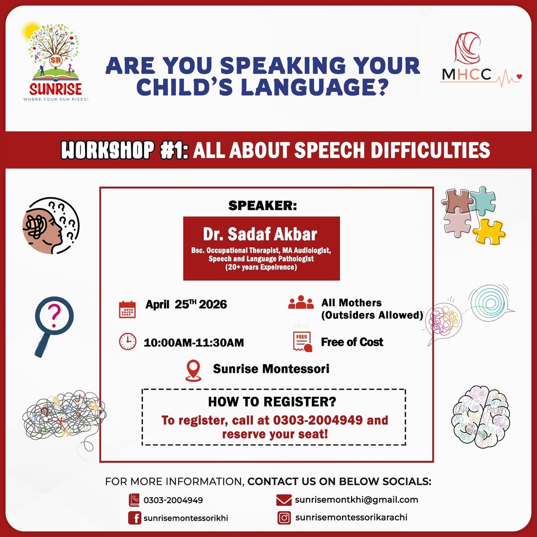 Join us for an insightful workshop with Dr. Sadaf Akbar and learn practical strategies to identify and manage speech difficulties in children.