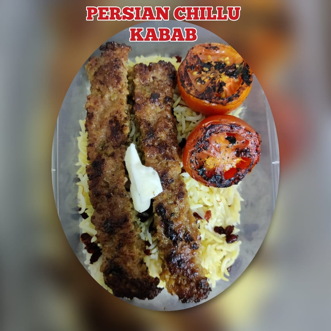 [Rice served with 3 Kababs(Beef), grilled tomatoes & onions]