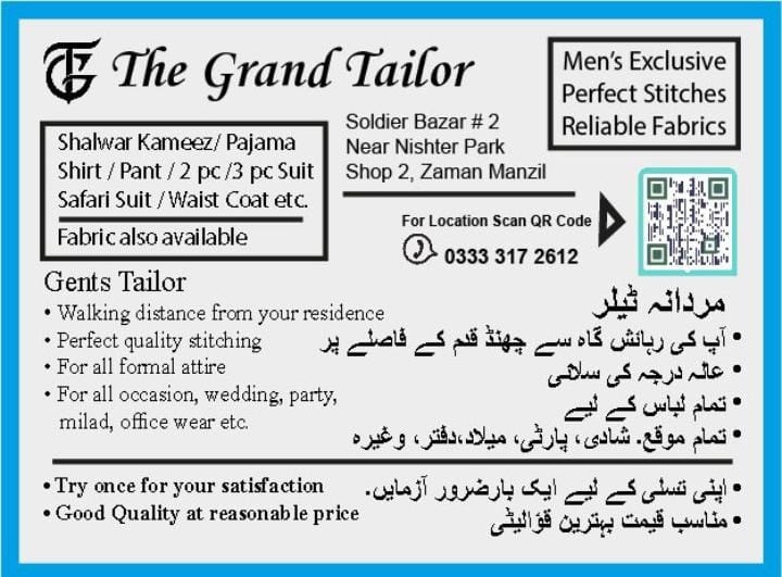 *Address: Shop 1 Zaman Manzil near Nashter park Soldier Bazar 2 Karachi*