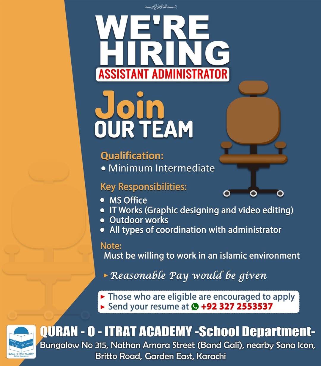๐Interested Candidates may send their Resume at +92 327-2553537